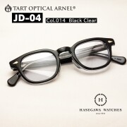 タートオプティカルアーネルの「JD-04」に新色ブラッククリア(Col.014)が登場! ウェリントン型のこのモデルは、ジョニーデップが愛用した1950年代の「TART OPTICAL ARNEL」を忠実に復刻。