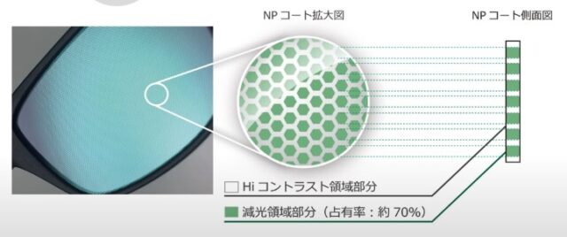 光の透過を抑えた六角形の特殊金属が網目状に施されたネッツペックコートは、装着するだけで、夜間運転時、対向車のヘッドライトから生じるグレアを軽減することが可能となります(効果の感じ方には個人差があります)。